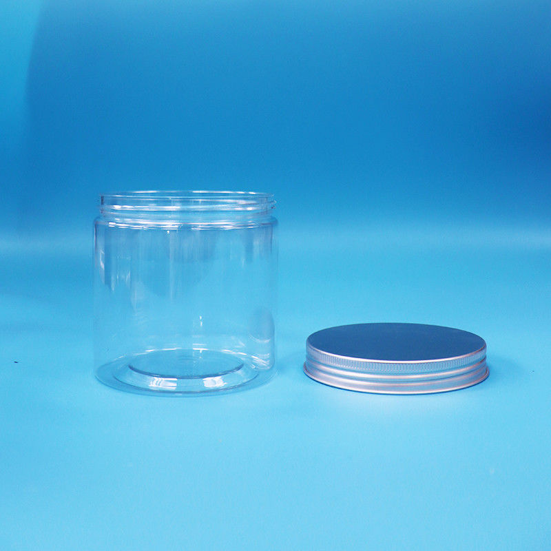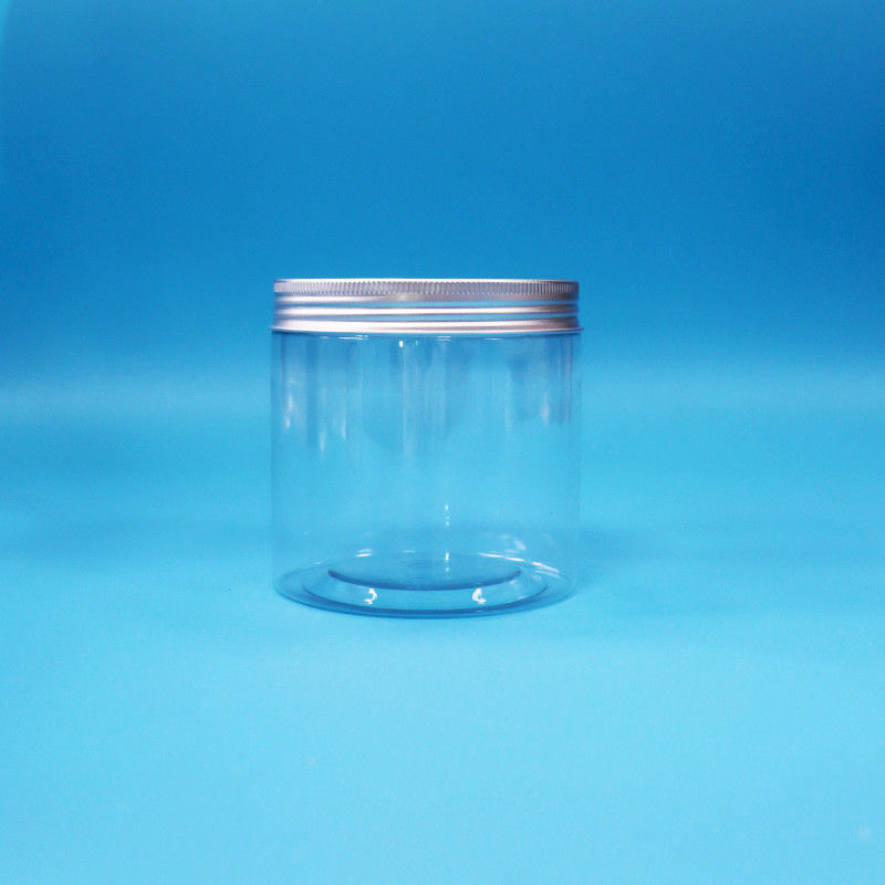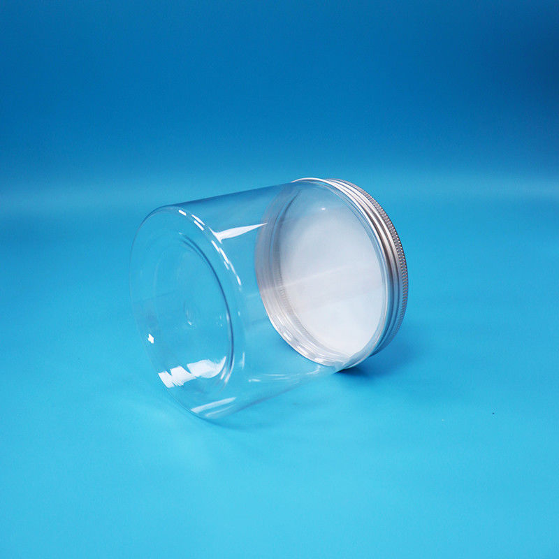 Duidelijke ronde, brede mond met cilinders, PET, plastic snoepjes, koekjes, flessen, aluminium kap.