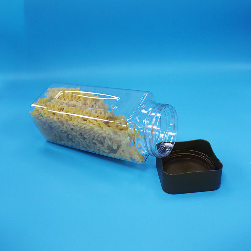 Leeg Transparent Breed Mond Rectangle PET Plastic Candy Nuts Jar Schroef platte dop