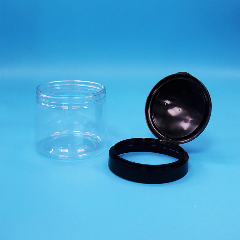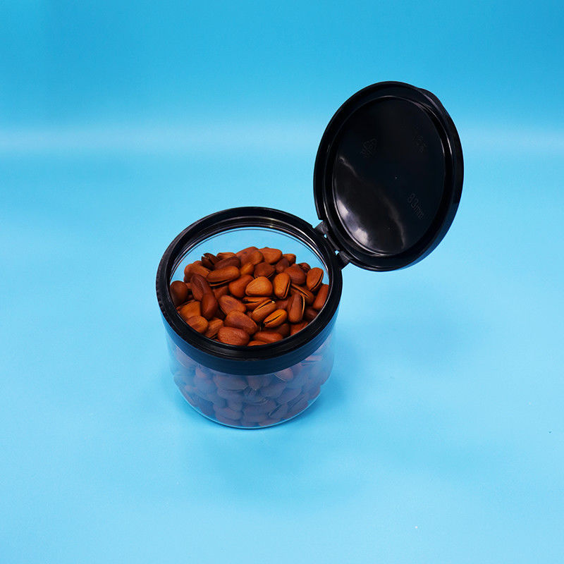 Voedselkwaliteit Kleine ronde Plastic opslag Doorzichtige pot Plastic zwart schroefdeksel