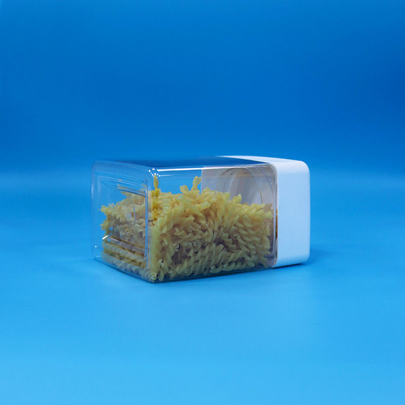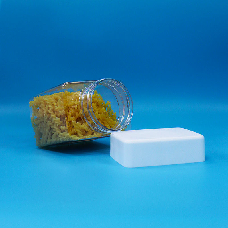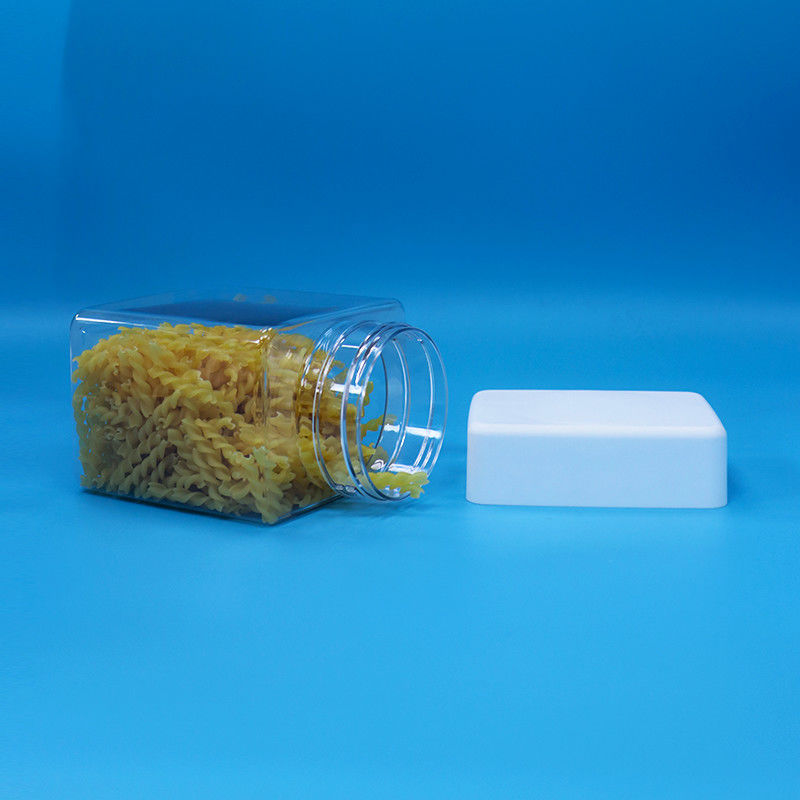 PET Snoep Snack Plastic Food Grade Transparantie Vierkante Potten Schroefdop Witte Deksel