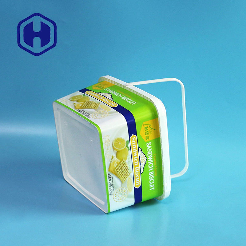 Eco-vriendelijke wegwerpspecificatie Duurzaam Vierkante 2L Plastic Cracker Biscuit IML Container Packaging Box